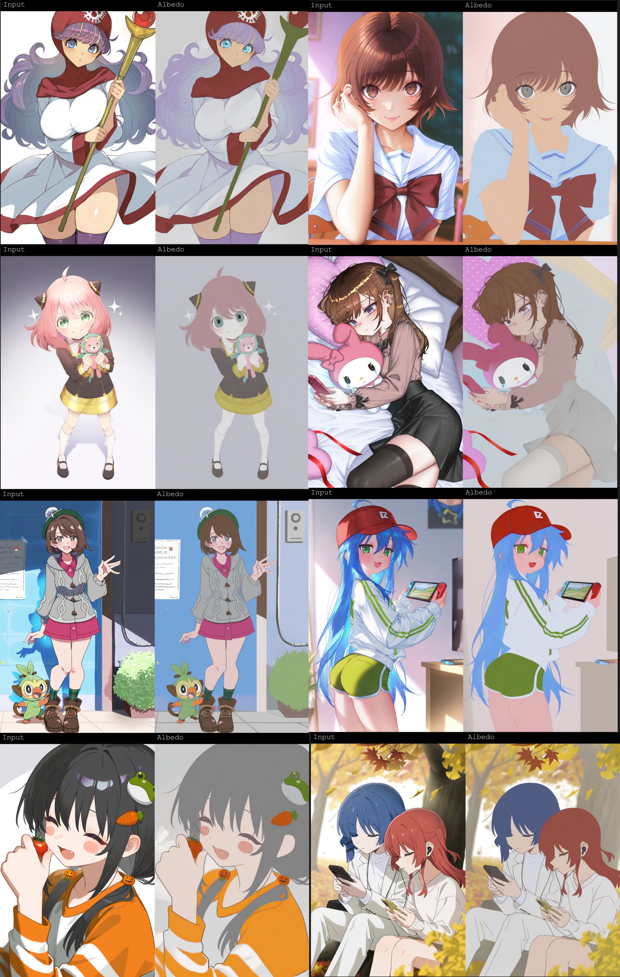 - For example, a dataset with only albedo channel available can still be employed to train our model.